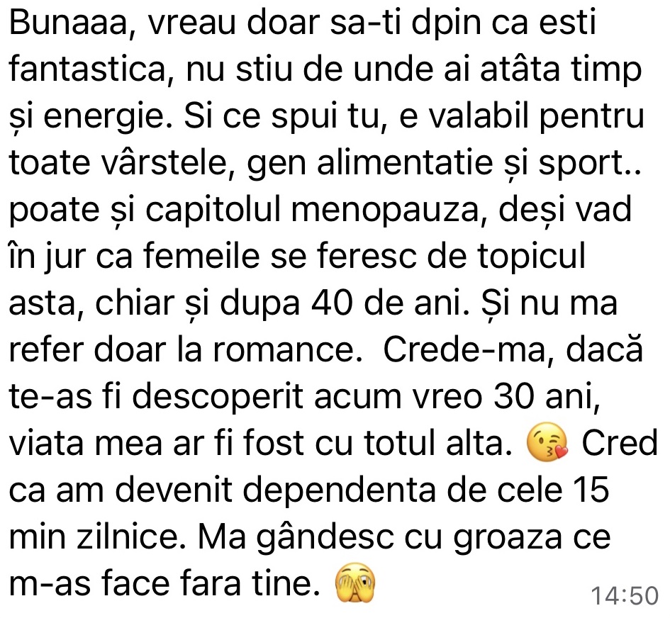 ȘTIU că femeile sunt ocupate. Știu că este provocator să găsești timp pentru mișcare. De aceea, am creat programe scurte, intense și explicate pe înțelesul fiecărei femei. Programe de antrenament realizate în confortul casei tale!